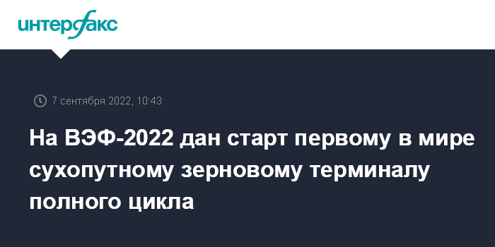 На ВЭФ-2022 дан старт первому в мире сухопутному зерновому терминалу полного цикла