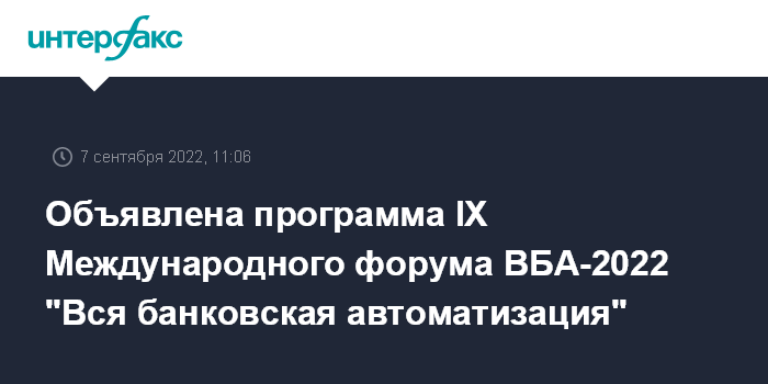 Объявлена программа IX Международного форума ВБА-2022 "Вся банковская автоматизация"