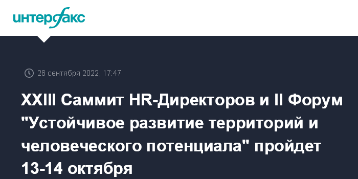 XXIII Саммит HR-Директоров и II Форум "Устойчивое развитие территорий и человеческого потенциала" пройдет 13-14 октября