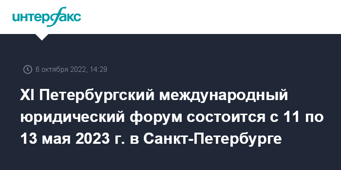 XI Петербургский международный юридический форум состоится с 11 по 13 мая 2023 г. в Санкт-Петербурге
