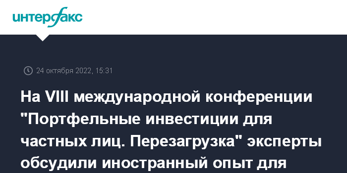 15 и 16 октября 2022 года состоялась VIII Международная онлайн-конференция "Портфельные инвестиции для частных лиц. Перезагрузка", организованная Национальной ассоциацией специалистов финансового планирования.