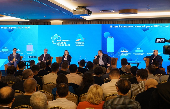 На Форуме работали 5 параллельных сессионных залов разных тематик. Зал "Рынок облигаций. Остров выживших" был организован совместно с Ассоциацией владельцев облигаций. Спикеры обсудили состояние российской экономики в условиях санкций, будущее долгового рынка РФ и возможности построения безубыточных стратегий инвестирования в условиях новой реальности.