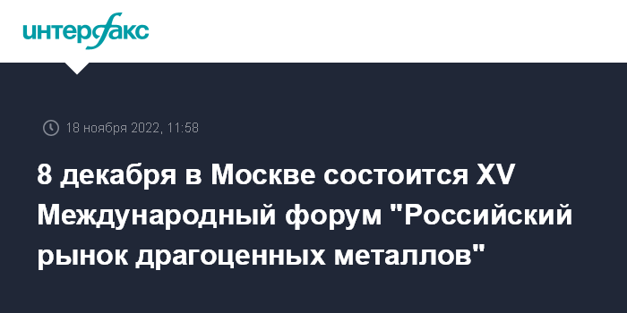 8 декабря в Москве состоится XV Международный форум "Российский рынок драгоценных металлов"