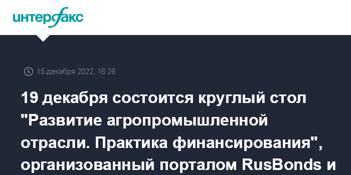 19 декабря состоится круглый стол "Развитие агропромышленной отрасли. Практика финансирования", организованный порталом RusBonds и Московской биржей
