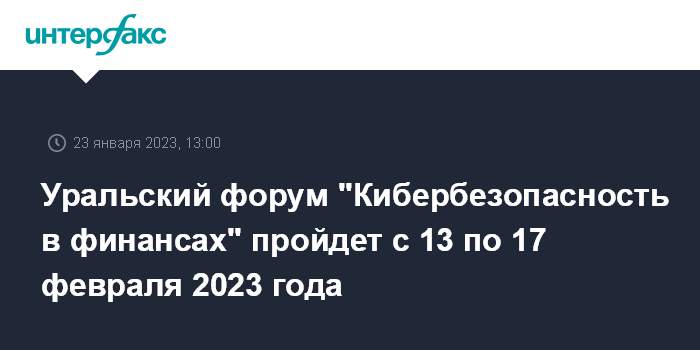 Уральский форум "Кибербезопасность в финансах" пройдет с 13 по 17 февраля 2023 года