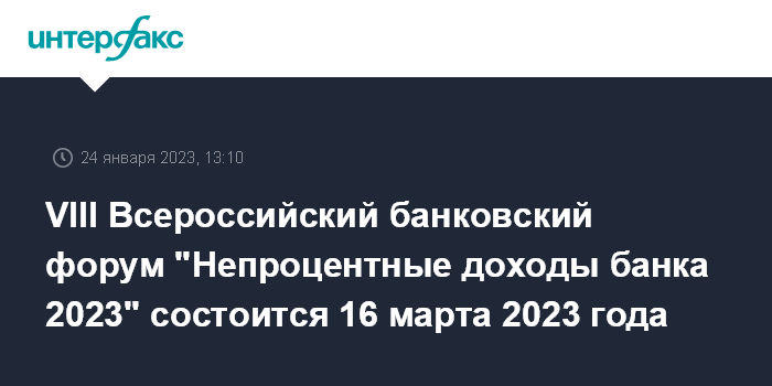VIII Всероссийский банковский форум "Непроцентные доходы банка 2023" состоится 16 марта 2023 года.