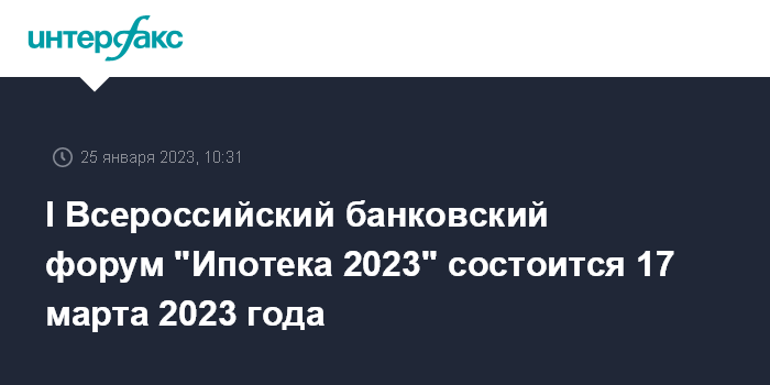 I Всероссийский банковский форум "Ипотека 2023" состоится 17 марта 2023 года