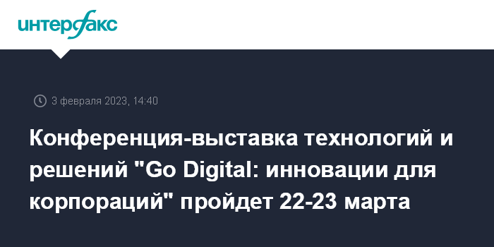 Конференция-выставка технологий и решений "Go Digital: инновации для корпораций" пройдет 22-23 марта