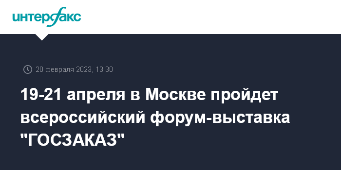 19-21 апреля в Москве пройдет всероссийский форум-выставка "ГОСЗАКАЗ"
