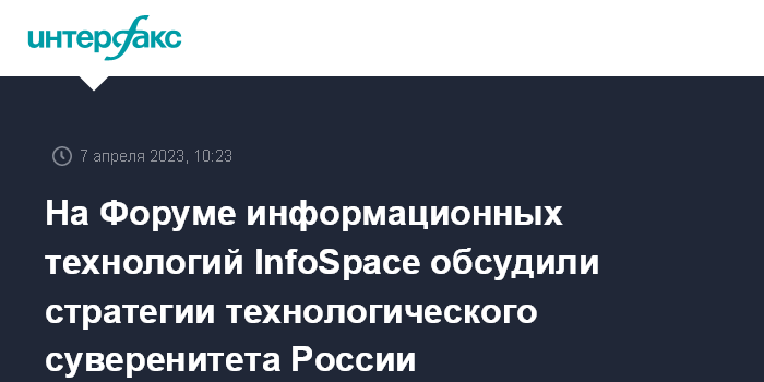 5 апреля 2023 года на площадке Центра событий РБК прошел XIV Форум информационных технологий "InfoSpaсe". Ключевая тема мероприятия – "Цифровой технологический суверенитет – стратегия опережающего развития России".