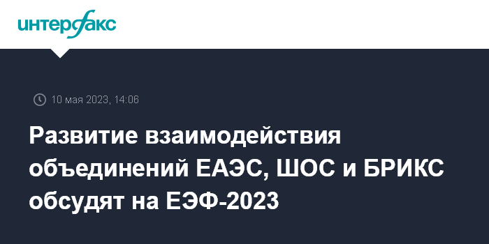 Развитие взаимодействия объединений ЕАЭС, ШОС и БРИКС обсудят на ЕЭФ-2023