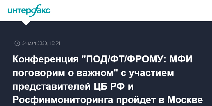 Конференция "ПОД/ФТ/ФРОМУ: МФИ поговорим о важном" с участием представителей ЦБ РФ и Росфинмониторинга пройдет в Москве