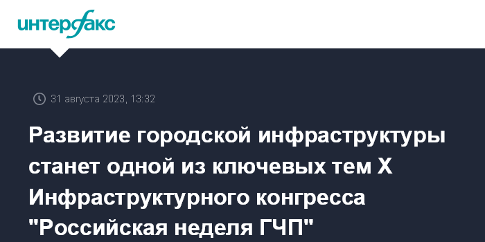 Развитие городской инфраструктуры станет одной из ключевых тем X Инфраструктурного конгресса "Российская неделя ГЧП"