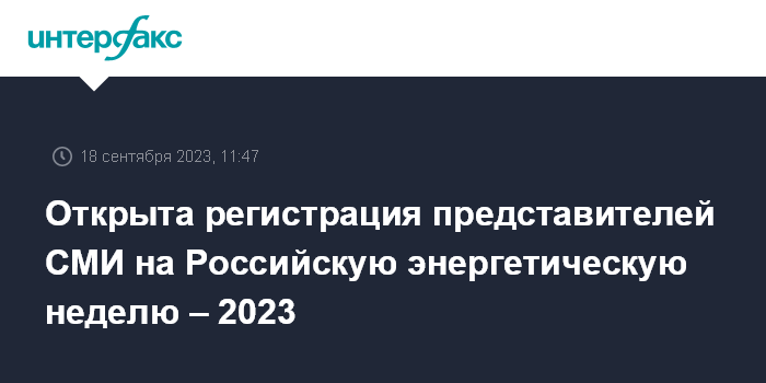 Открыта регистрация представителей СМИ на Российскую энергетическую неделю – 2023