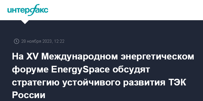 На XV Международном энергетическом форуме EnergySpace обсудят стратегию устойчивого развития ТЭК России