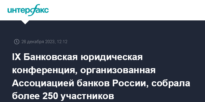 На IХ Банковской юридической конференции "Банковское право России: развитие и консерватизм", прошедшей 20—21 декабря 2023 года, выступили руководители Банка России, Минфина, АСВ, ФАС, Федерального казначейства, законодатели, ученые-правоведы, представители кредитных организаций, юридических центров и компаний. В мероприятии, организованном Асcоциацией банков России, приняли участие в оффлайн- и онлайн-формате более 250 человек.