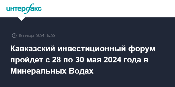 Кавказский инвестиционный форум пройдет с 28 по 30 мая 2024 года в Минеральных Водах
