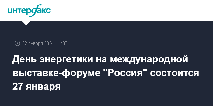 День энергетики на международной выставке-форуме "Россия" состоится 27 января