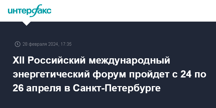 XII Российский международный энергетический форум пройдет с 24 по 26 апреля в Санкт-Петербурге
