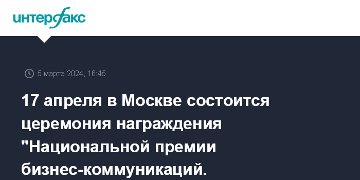 17 апреля в Москве состоится церемония награждения "Национальной премии бизнес-коммуникаций. Эффективность"