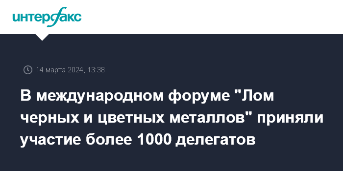 В международном форуме "Лом черных и цветных металлов" приняли участие более 1000 делегатов