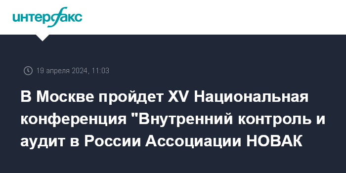 В Москве пройдет XV Национальная конференция "Внутренний контроль и аудит в России Ассоциации НОВАК