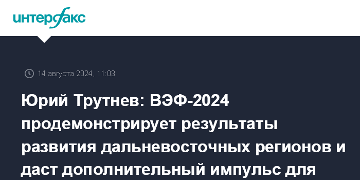 Юрий Трутнев: ВЭФ-2024 продемонстрирует результаты развития дальневосточных регионов и даст дополнительный импульс для развития Дальнего Востока