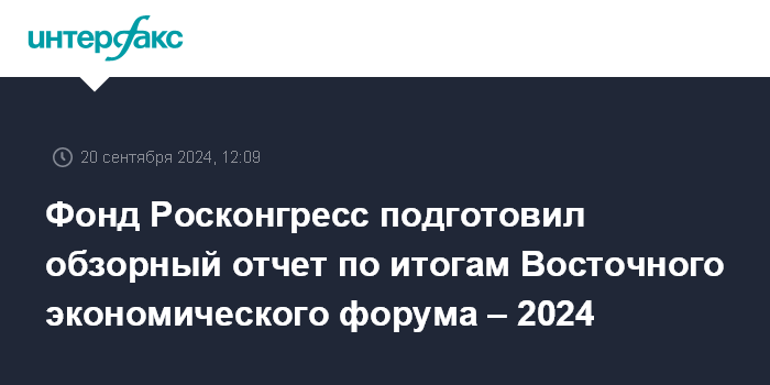 Фонд Росконгресс подготовил обзорный отчет по итогам Восточного экономического форума – 2024
