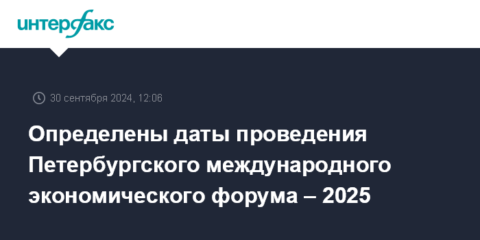 Петербургский международный экономический форум состоится 18–21 июня 2025 года.