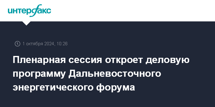 Пленарная сессия откроет деловую программу Дальневосточного энергетического форума