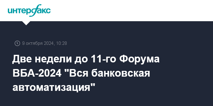 Две недели до 11-го Форума ВБА-2024 "Вся банковская автоматизация"