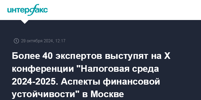 Более 40 экспертов выступят на X конференции "Налоговая среда 2024-2025. Аспекты финансовой устойчивости" в Москве