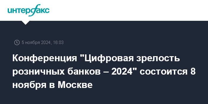 Конференция "Цифровая зрелость розничных банков – 2024" состоится 8 ноября в Москве