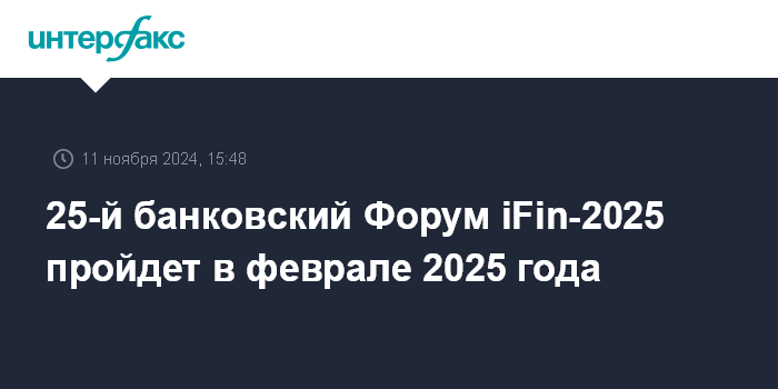 25-й банковский Форум iFin-2025 пройдет в феврале 2025 года