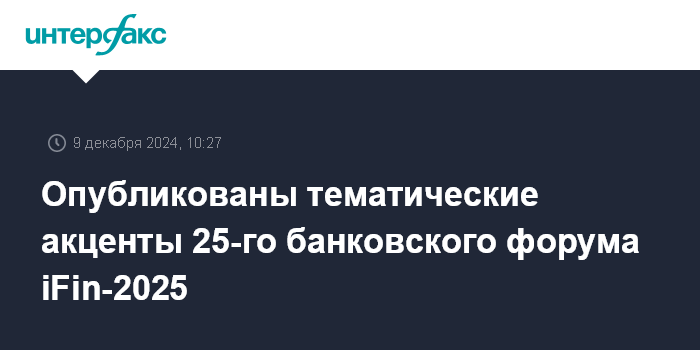 Опубликованы тематические акценты 25-го банковского форума iFin-2025