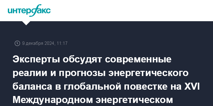 17 декабря 2024 года в Центре событий РБК (Космодамианская наб., дом 52, стр. 7) состоится XVI Международный Энергетический Форум EnergySpace. Участники Форума обсудят место климатических вопросов в глобальной энергетической повестке, выполнение 7-ой цели ООН в области устойчивого развития в условиях санкционного давления на Россию, значимость повышения энергоэффективности в промышленности, транспорте и зданиях для устойчивого развития энергетического сектора и др. К участию приглашены представители посольств и деловых кругов таких стран как ОАЭ, Китай, Саудовская Аравия, Иран, Казахстан, Азербайджан, Узбекистан, Таджикистан, Кувейт, Катар, Венесуэла, Малайзия, Бразилия, ЮАР.