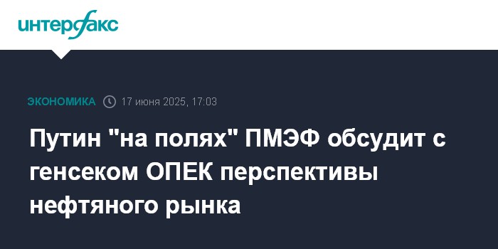 Путин "на полях" ПМЭФ обсудит с генсеком ОПЕК перспективы нефтяного рынка