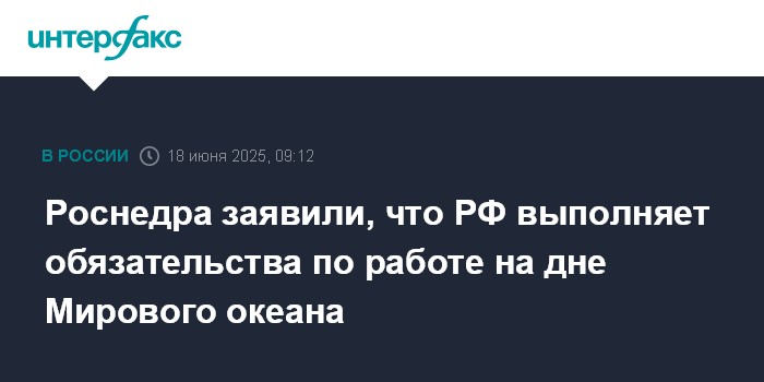 Москва. 18 июня. INTERFAX.RU - Россия выполняет обязательства по работе на дне Мирового океана в рамках контрактов с Международным органом по морскому дну, страна готовится к тесту соответствующего добычного оборудования. Об этом в интервью "Интерфаксу" в преддверии ПМЭФ-2025 рассказал руководитель Федерального агентства по недропользованию (Роснедра) Олег Казанов.
