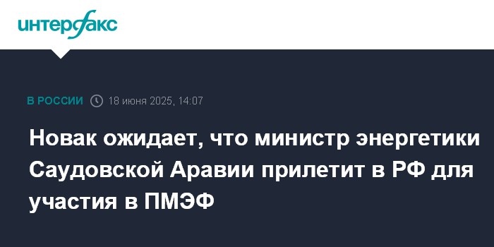 Новак ожидает, что министр энергетики Саудовской Аравии прилетит в РФ для участия в ПМЭФ