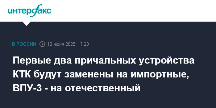 Москва. 18 июня. INTERFAX.RU - Каспийский трубопроводный консорциум в 2026-2027 году заменит выносные причальные устройства N1 и N2 на агрегаты иностранного производства, а не российского, сообщил журналистам генеральный директор КТК Николай Горбань в рамках ПМЭФ-2025.