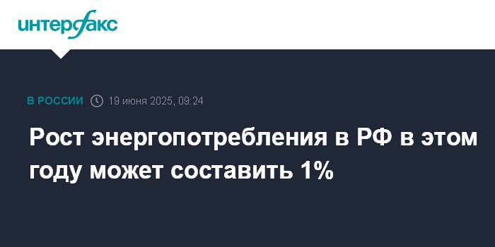 Москва. 19 июня. INTERFAX.RU - Потребление электроэнергии в России в этом году может вырасти на 1%, поделился с "Интерфаксом" соответствующими ожиданиями глава "СО ЕЭС" Федор Опадчий в кулуарах ПМЭФ.