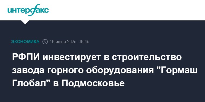 РФПИ инвестирует в строительство завода горного оборудования "Гормаш Глобал" в Подмосковье