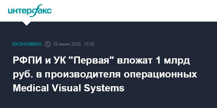 Москва. 19 июня. INTERFAX.RU - Российский фонд прямых инвестиций (РФПИ) и УК "Первая" инвестируют 1 млрд рублей в компанию Medical Visual Systems, производящую интегрированные операционные для медицинских учреждений.