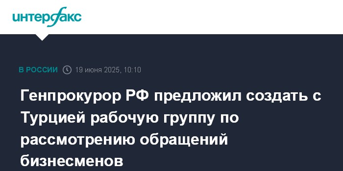 Генпрокурор РФ предложил создать с Турцией рабочую группу по рассмотрению обращений бизнесменов