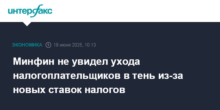 Москва. 19 июня. INTERFAX.RU - Минфин РФ не видит ухода налогоплательщиков в тень после корректировки ставок ключевых налогов, поступления в бюджет соответствуют ожиданиям.