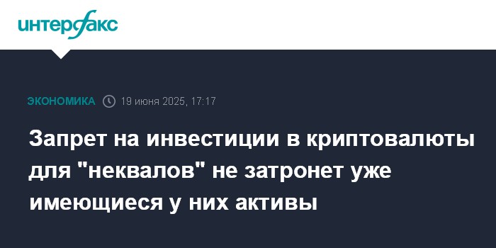 Запрет на инвестиции в криптовалюты для "неквалов" не затронет уже имеющиеся у них активы