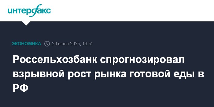 Москва. 20 июня. INTERFAX.RU - Россельхозбанк на фоне современных потребительских предпочтений и структурной перестройки в АПК прогнозирует взрывной рост рынка готовой еды в РФ.