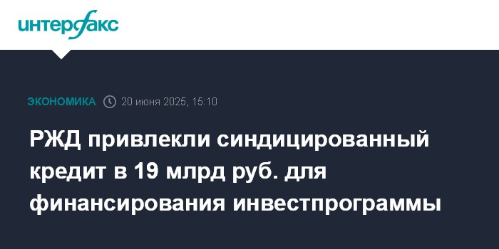Москва. 20 июня. INTERFAX.RU - ОАО "РЖД" привлекло синдицированный кредит на сумму 19 млрд руб. со сроком погашения три года, сообщила компания.