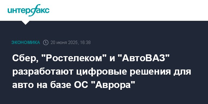 Москва. 20 июня. INTERFAX.RU - Сбербанк, ПАО "Ростелеком" и "АвтоВАЗ" заключили меморандум о сотрудничестве, предусматривающий совместную разработку цифровых решений для автомобилей на базе российской мобильной операционной системы "Аврора". Документ был подписан в рамках ПМЭФ-2025, говорится в сообщении сторон.