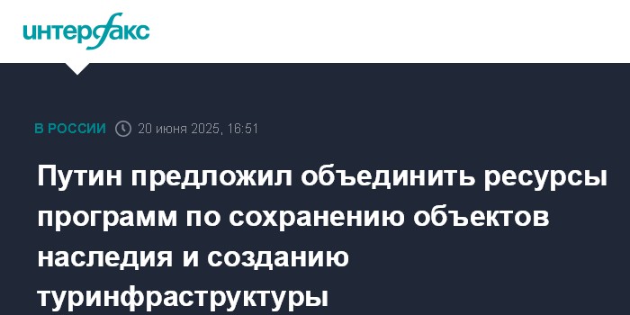 Путин предложил объединить ресурсы программ по сохранению объектов наследия и созданию туринфраструктуры